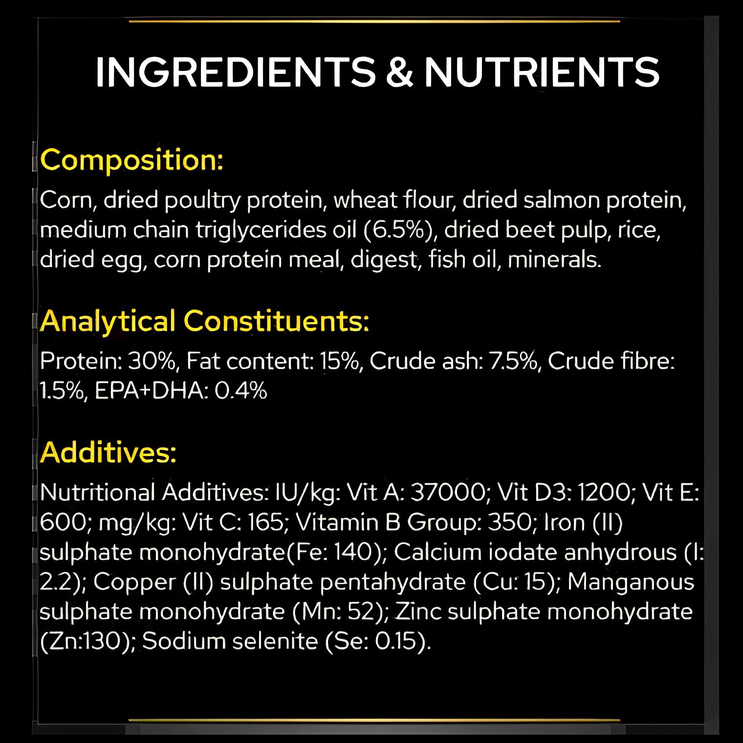 - มีส่วนผสมของ MCTs และสารอาหารที่ช่วยบำรุงระบบประสาท ได้รับการพิสูจน์ทางการแพทย์แล้วว่าช่วยเสริมการทำงานของสมองในสุนัขให้ดีขึ้น