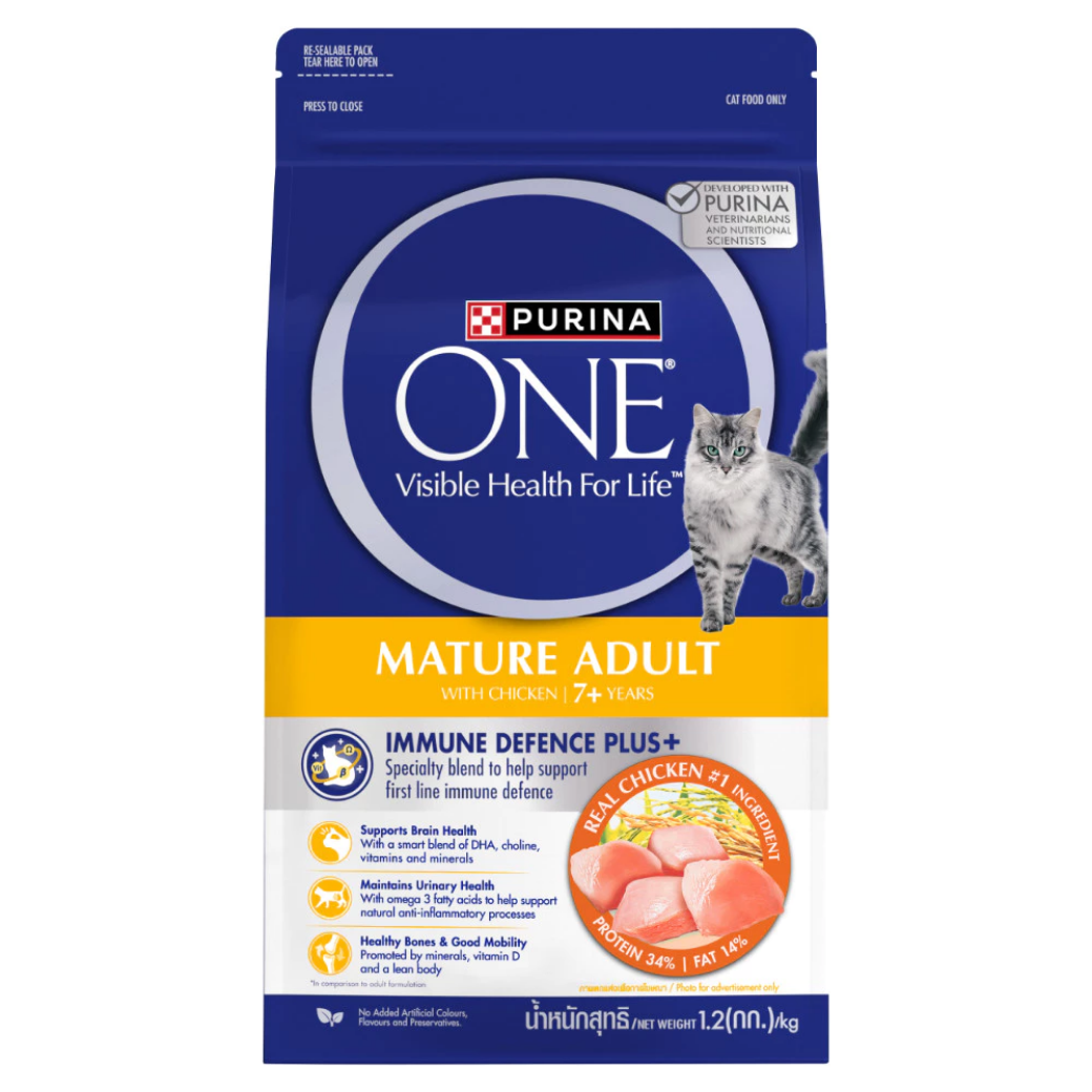 PURINA ONE Mature Adult 7+ – เพียวริน่า วัน อาหารเม็ดสำหรับแมวสูงวัย อายุ7ปีขึ้นไป (1.2-2.7 Kg.)